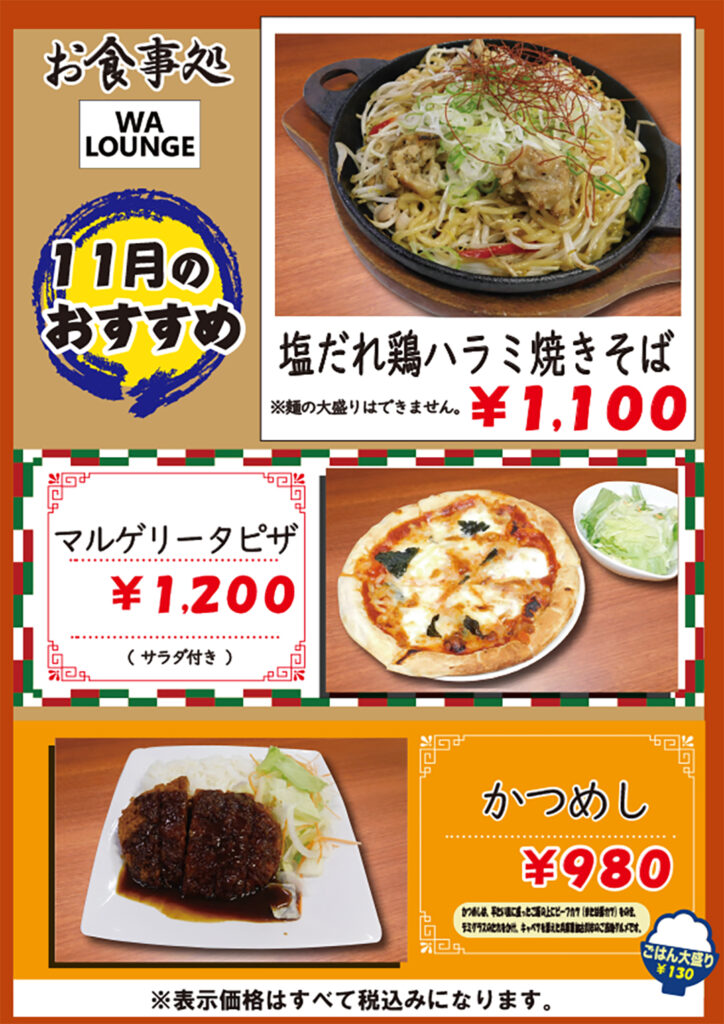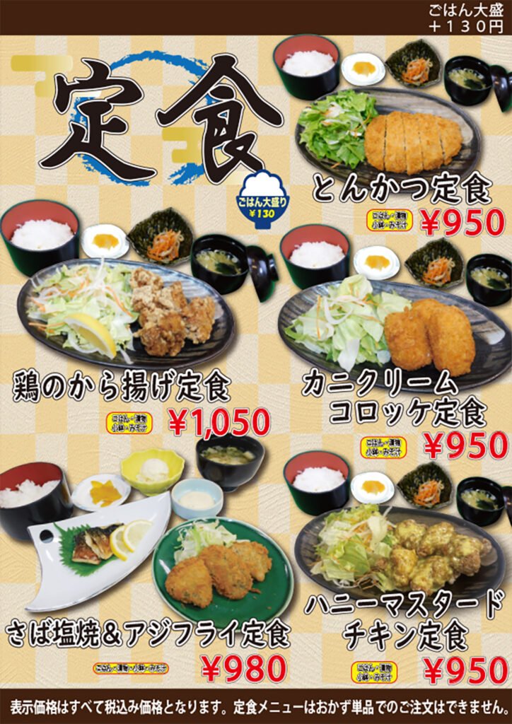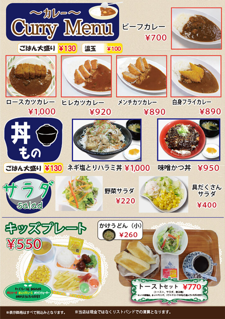 和風の定食を中心とした月替わりのメニューの他にも、豊富な種類のトッピングから選べるカレーやうどん、キッズメニューもご用意しております。