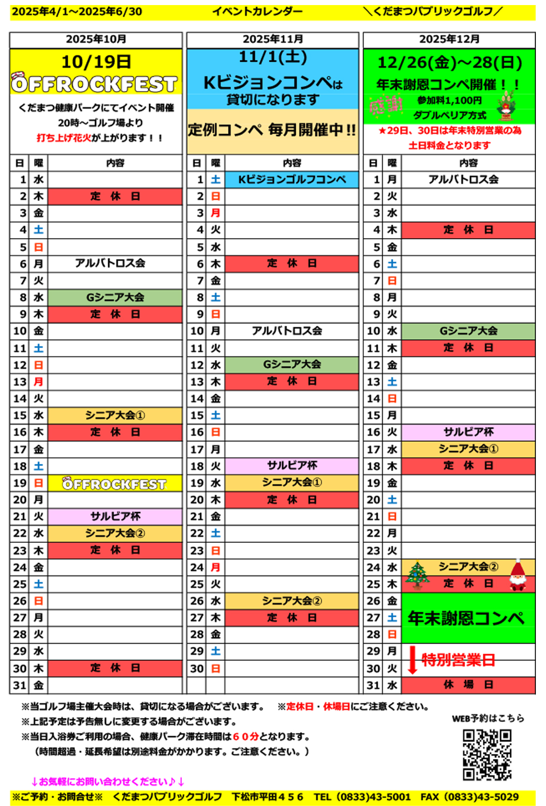 ゴルフ利用当日のくだまつ健康パーク入館・入浴時間の変更