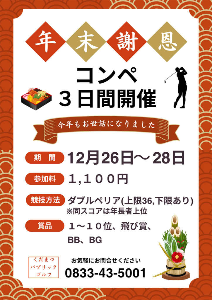 12月26日(金)~28日(日)年末謝恩コンペ開催!